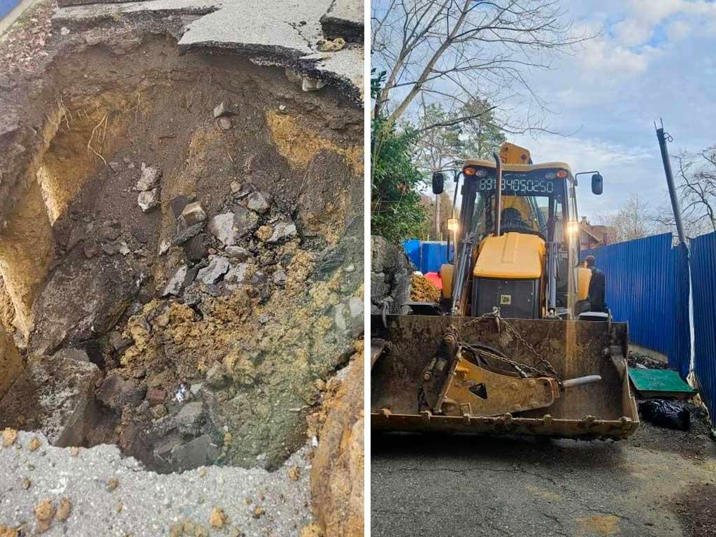Ранее специалисты обследовали место происшествия и выяснили, что причиной стал обвал грунта на соседнем участке, где ведется строительство. Это привело к образованию полости под дорожным полотном размером более 20 кубометров.